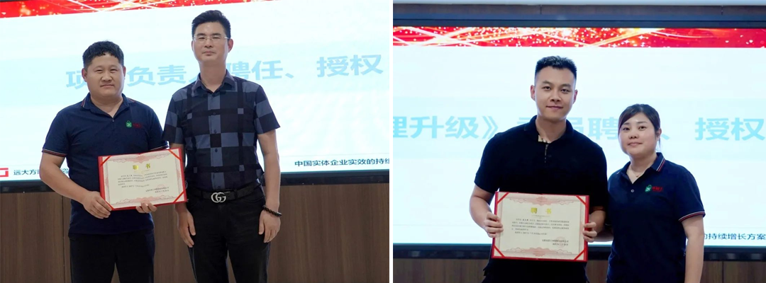 會上,潘總和李總對遠(yuǎn)大方略項目組進(jìn)行了聘用授權(quán),為項目小組關(guān)鍵人員頒發(fā)了聘書,并簽訂誓言集體宣誓,鼓勵大家全力以赴投身變革,共同創(chuàng)造更具競爭力的企業(yè)。
